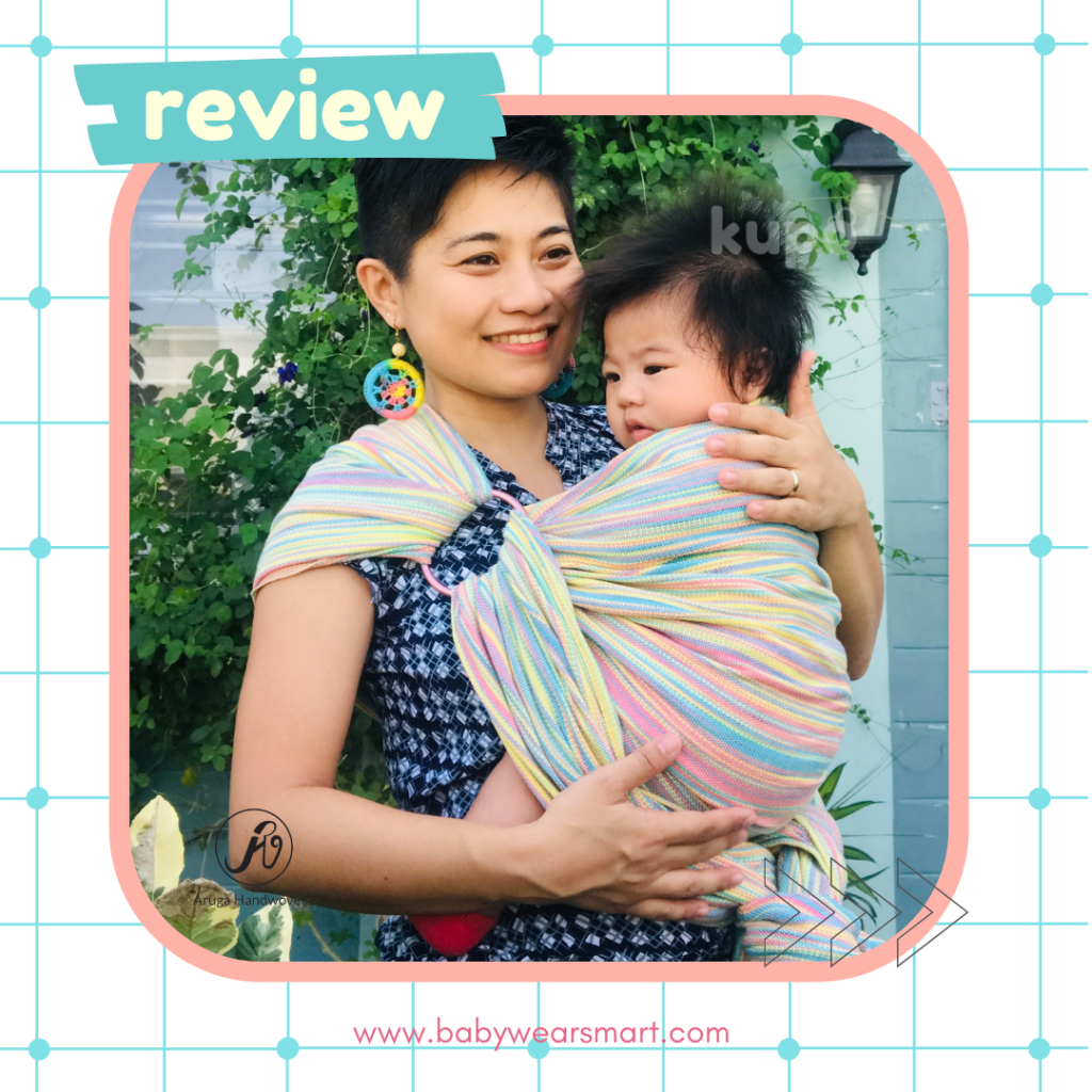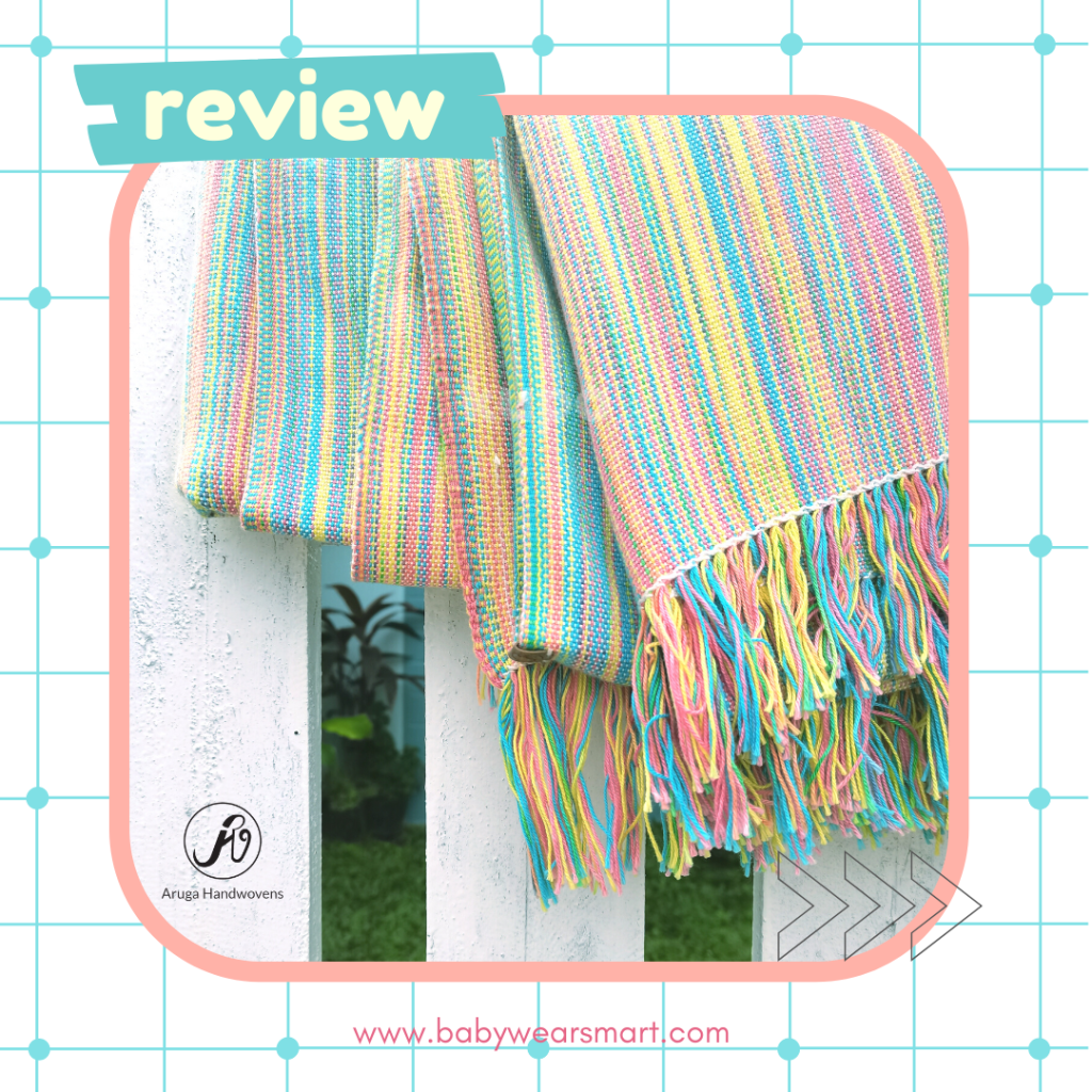 Aruga Handwovens is a proud Philippine-based sling maker who creates their wraps by hand and makeshift looms. The humble company is owned by a Certified Babywearing Consultant, Ms Jeannie Laccay. She is a mom of two, a successful weaving master, a stand-up comedian and one of the leaders of the Babywearing Philippines Organization. I have known her personally since we were batchmates during our consultancy training in April 2019 at KL. She is a driven woman and has a passion in sharing her weaving skills to empower Filipino women and make this slowly-fading industry alive again. I am also proud to share that Aruga Handwovens is being used by celebrities here in the Philippines and is also making its name abroad. The term “aruga” is a Filipino word which means “care”.