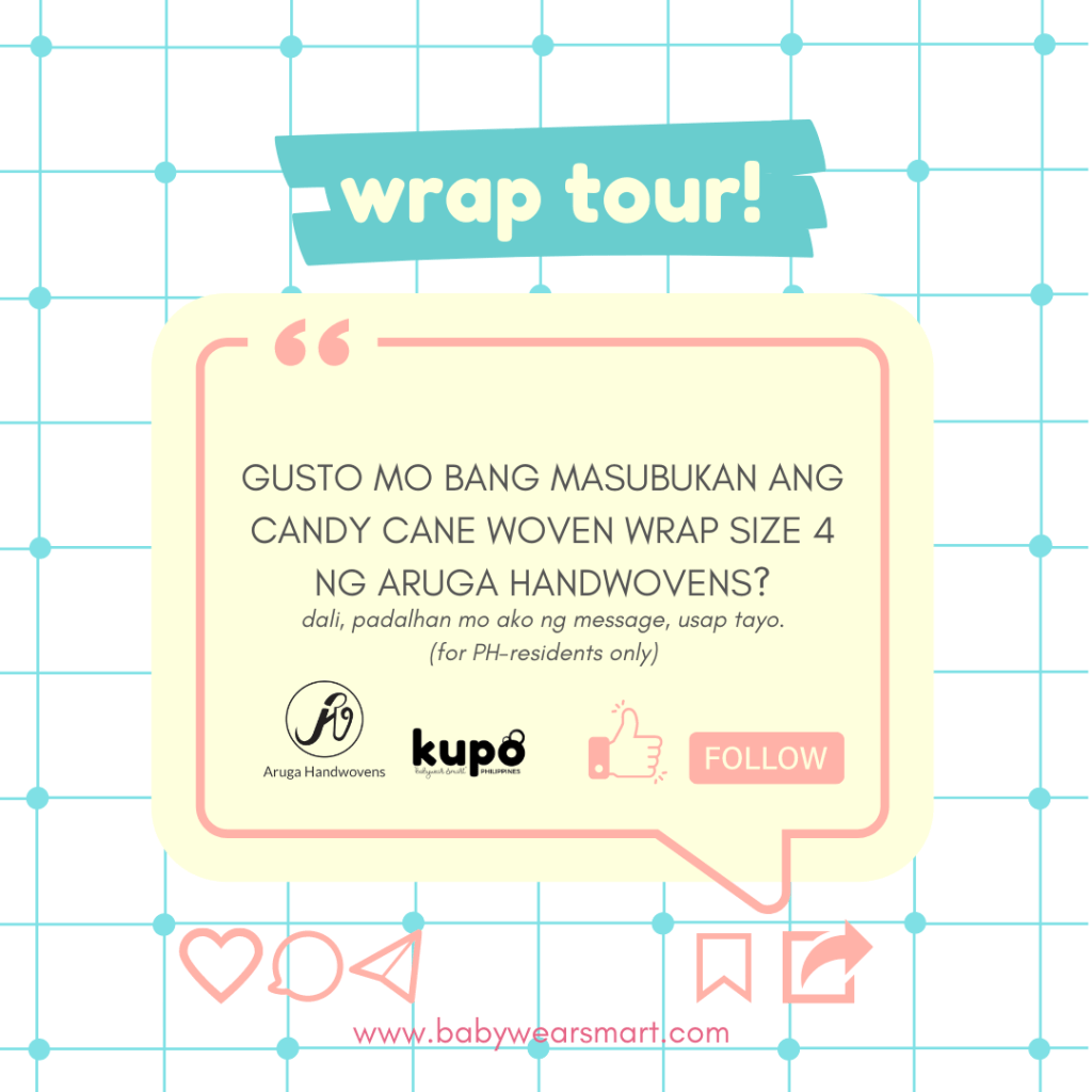 Aruga Handwovens Candy Cane Woven Wrap is an eye-candy as much as it serves its main purpose. It took me a while to give reviews as I see it well-fitting so that I can attest to products’ overall durability with ample care and moderate use (I still utilize my own carriers for daily use to preserve product samplers) and yes, Aruga Handwovens is a carrier that can withstand for long periods of time, with little to no fading and nor fabric turning brittle or harsh.